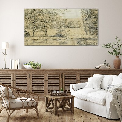 A peaceful landscape by the river Wall art on glass
