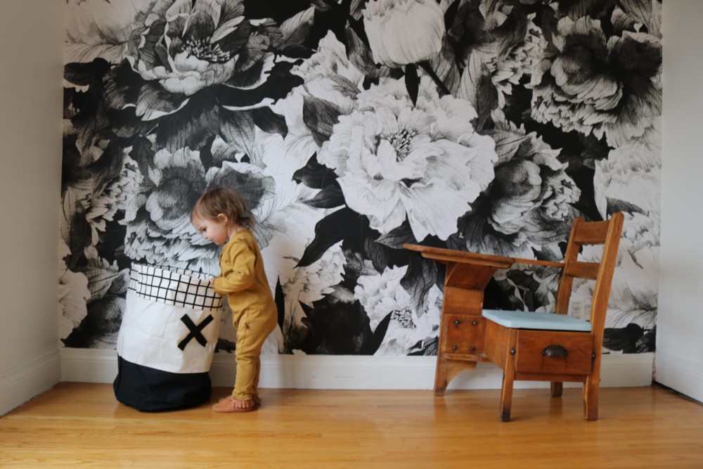 Having fun with colors constitutes one of the favorite activities of children. Installing a black wallpaper we provide them with a nice background for creative activity. Black does not determine a gender, does not reinforce classic stereotypes with which it is associated, and actually allows for independence in selecting the additions and furniture for decorating the surrounding. The Grey Peony peel&stick wall mural additionally includes a subtle floral print which will slightly lighten up the interior. A great choice for the living room, play room, or bedroom.