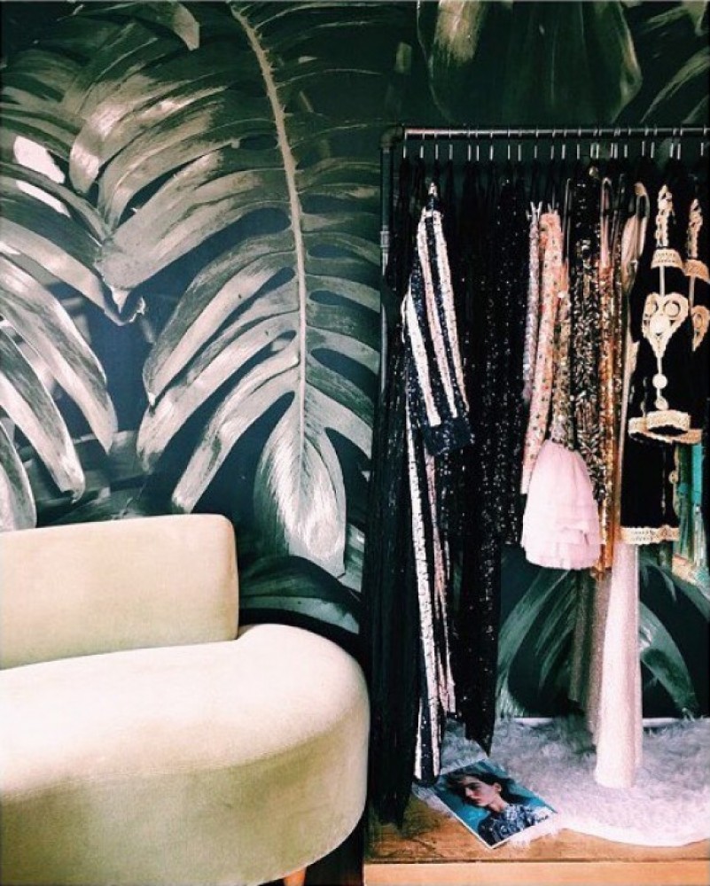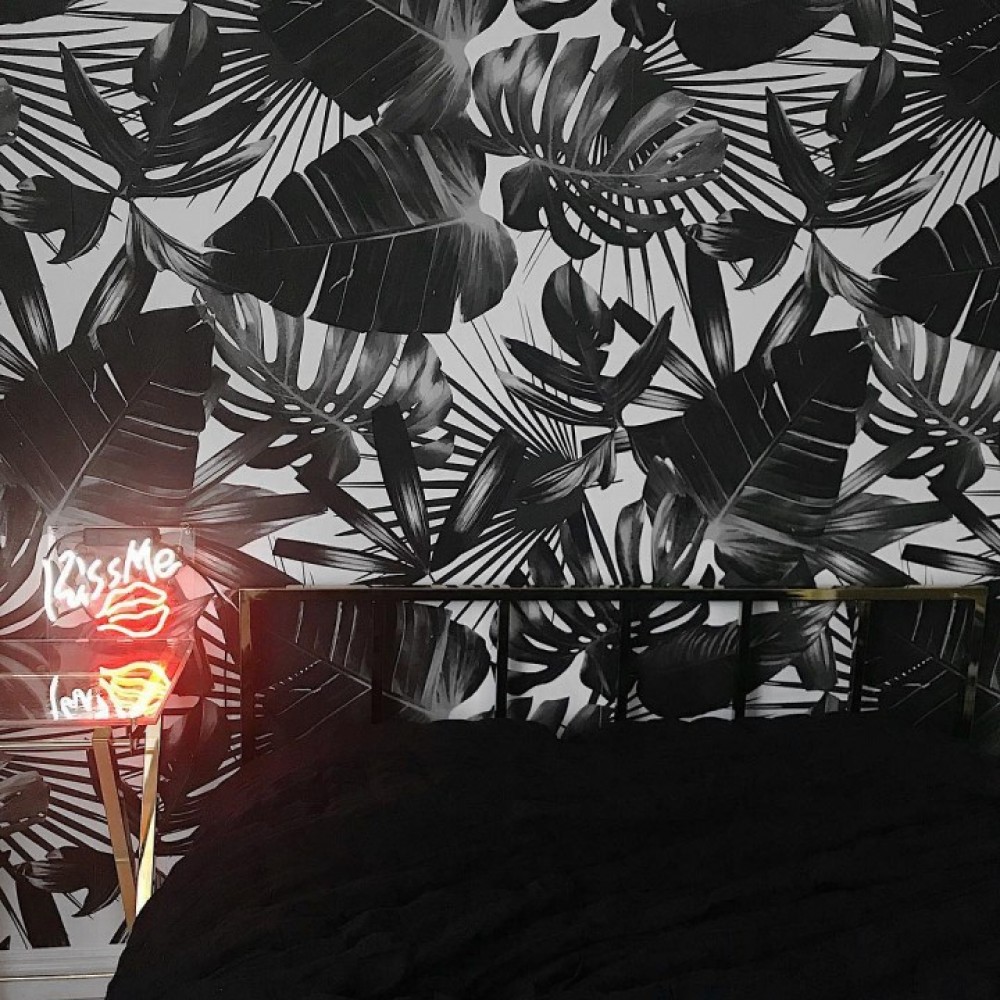A dark background and dark green? Why not! The elegant Monstera Leaf removable wallpaper gives interesting character to an interior. Under a large dark-green leaf we will feel as if in a mysterious jungle. The black wallpaper is an element of mystery and surprise, while the green leaf breaks the dullness. If one places various green potted plants in front of this peel&stick wallpaper it is possible to achieve a perfect complementation of the decoration.