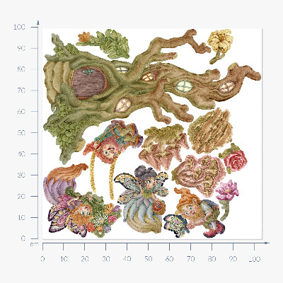 Wall sticker 100x104 Forest creatures and a pastel treehouse